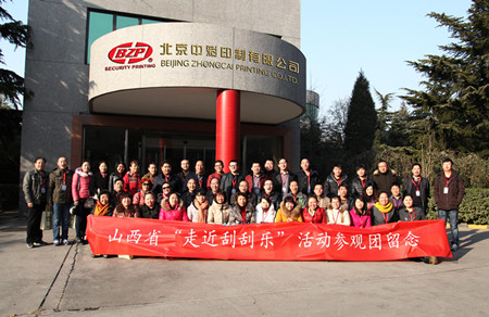 2014年3月4日,作为2014年首个“走近刮刮乐”参观团,一行50人的天津福彩参观团来到中国福利彩票发行管理中心刮刮乐定点生产企业——北京中彩印制有限公司,了解即开型彩票的发展历程和设计工艺,亲临车间见证了刮刮乐的生产全过程。[详情]