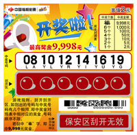 刮开刮开区,如刮出的号码与中奖号码有几个相同,即中正面奖金对照表中相对应的奖金,号码顺序不限。 若刮中“福”字,即中9,998元奖金。