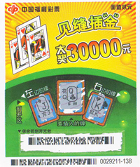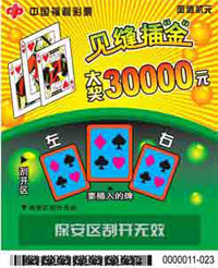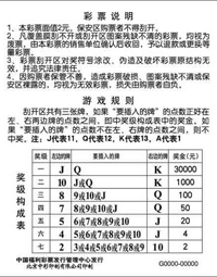 刮开区有三张牌,如果“要插入的牌”的点数正好在左、右两边牌的点数之间,即中奖级构成表中相应的奖金;如果“要插入的牌”的点数不在左、右牌的点数之间,则不中奖。奖金及数量详见《彩票奖级构成表》。