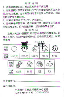 刮开对奖区的覆盖膜,出现多种不同水果图形,如有与《图例》中所示图形相符的,即中所示之奖金。可兼中兼得。