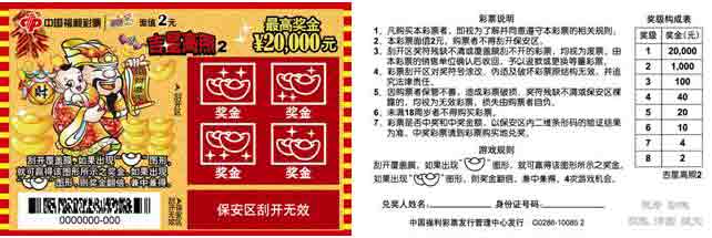 刮开覆盖膜,如果出现“单元宝”图形,即可赢得该图形所示之奖金。如果出现“ 双元宝”图形,则奖金翻倍。兼中兼得。4次游戏机会。