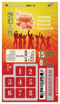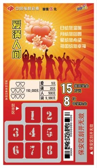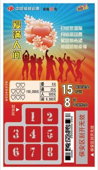 刮开刮开区,若出现的图符与奖符和奖金对照表中的图符相同,即中相对应的奖金,如果出现多个中奖图符,即中奖金之和;若出现8个“