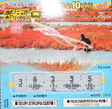 孙先生喜欢福彩,下班回家的路上总不忘捎上几注彩票,借用孙先生的话说:“就是每天把希望带回家”。这天下班后,孙先生照样来到投注站,一到站上就发现了墙上贴着“黄河口”即开票的宣传海报,销售员赶紧递上宣传单并加以介绍,孙先生认真听仔细看着,当知道该票种十张为一套,还具有收藏价值时,就索性要了十张。孙先生仔细阅读过游戏规则后就小心意意的一张一张的刮着,刮到第六张的时候,孙先生心情有些激动,赶紧叫过销售员来帮忙确认。“中奖数字”是3,“你的数字”里也有个3,下面的奖金显示是100000元,“孙先生,您太幸运了,这是一等奖10万元”销售员也激动向他表示祝福,处在兴奋状态下的孙先生半天才回过神来,高兴地合不拢嘴。次日,孙先生在朋友的陪同下前来市福彩中心领走了他的大奖。