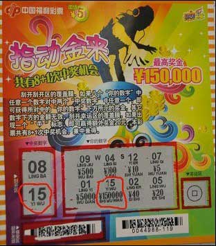 “刮刮乐”是一种全新的网点即开型福利彩票,它以“扶老、助残、救孤、济困、赈灾”为发行目的,即买即开,返奖率达到65%。“指动金来”彩票属于刮刮乐即开型彩票系列票种之一,刮开“指动金来”彩票刮开区的覆盖膜,若“你的数字”中八个数字任意一个数字对中两个“中奖数字”中任意一个即可获得所对中的“你的数字”下方所示的奖金,其它数字下方的金额无效。刮开幸运区,若出现钻石标志,即可赢得额外奖金20元。“指动金来”彩票的最高奖金为15万元。(海明 阳光)