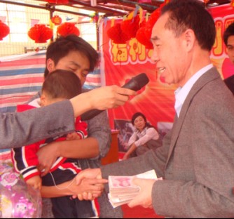 (省福彩中心副主任刘伯强为大奖得主颁奖)