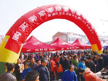 3月19日,农历二月初四,是安徽滁州市南谯区腰铺镇一年一度的传统庙会。当天赶庙会的估计有四万多人,整个集市上,音乐声、叫卖声、吆喝声,真是人山人海,热闹非凡。在庙会最繁华的街道上,一幅巨大的“买彩票、献爱心、碰运气、中大奖”彩虹门和大红帐篷尤其突出醒目。上午七点多钟,随着歌曲《爱的奉献》的感染,加上主持人对福利彩票公益事业的宣传,二十多米长销售即开彩票“刮刮乐”的长桌前,已经是人头攒动了。