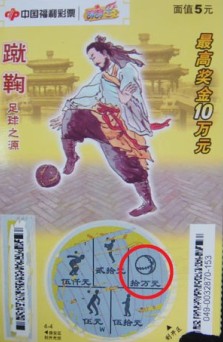 碰运气 刮中“足球之源——蹴鞠”10万头奖