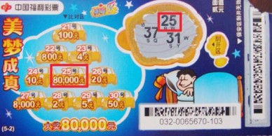 工薪阶层的刘先生,多年来最大的梦想就是能中个大奖。没想到他的梦想在刮刮乐“美梦成真”上实现了。虽说一直怀揣中奖梦,但刘先生在投注上却非常理性,每天最多投入10元。中奖当天刘先生并未意识到自己今天会中大奖,当时他只购买了5张听上去很吉祥的“美梦成真”彩票。刮到前3张彩票时,只中了个2元小奖。待第4张刮开时,他将“刮开区”的3个号码25、37、31,一个个与“对比区”的号码对照,当在“比对区”看到25时,刘先生明白,这张彩票有奖,再仔细一看25下方对应的奖金时,刘先生有点蒙了,数数8后面的0一看,竟是80000头奖。