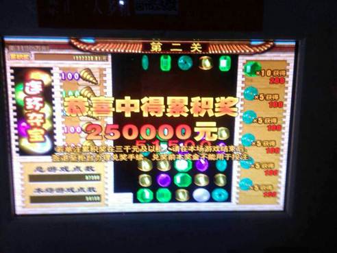 他当天手气不错,小奖不断,让他没想到的是,好戏还在后头。第二关将要结束时,20颗猫眼石齐刷刷地落在一起,紧接着屏幕上出现“恭喜中得全国累积奖金250000元”的字样,当时整个销售厅都沸腾了,彩友们纷纷向王先生表示祝贺。