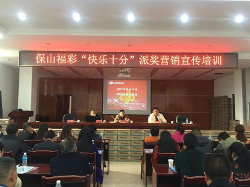 此次会议最主要内容是云南省福彩中心宣传部薛海云对全市275家站点进行了“快乐十分”派奖宣传培训。从销量的同环比增长、各类电脑票玩法的讲解、以及福、体彩对比等多个角度深入分析,增强业务知识,教授销售技巧使得这次培训会议取得了圆满成功。会议结束后,保山市福彩中心第一时间将宣传海报、宣传单、布标等资料发放到投注站点,确保每个投注站点都能及时、足量收到宣传资料。