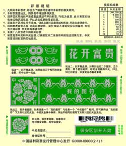 据悉,“洛阳牡丹——富贵有余8”系列相对于以前有了很多变化。其在保留了以前对花有奖的基础上新增加了三种附加玩法,分别是:玩法一:刮开覆盖膜,如果出现三个相同的奖金金额,则中该单一奖金;玩法二:刮开“花开富贵”四个字,若刮出两个图形、三个图形、四个图形相同,即可分别获得10元、20元、50元的奖金;玩法四:刮开彩票左下角的牡丹图案,如果刮出任何奖金金额,即中该奖金。