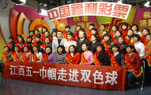2009年“三 八国际妇女节”,福利彩票双色球开奖现场迎来了一群特殊的客人——首批“五一巾帼参观团”。来自江西各条战线上的“五一劳动模范”、“三八红旗手”、“巾帼建功立业标兵”等41名先进妇女代表在短短两个小时的时间里,与福利彩票进行了一次亲密接触,零距离感受了摇奖现场的公正透明,了解了福彩公益金的使用情况。她们高兴地说:“我们真是给自己扫了一次福彩盲啊!”