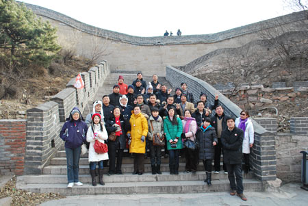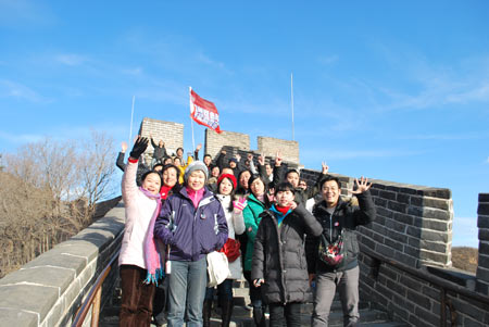 除了走进演播室现场观摩双色球和3D摇奖之外,此次江西公安城管代表团还被安排参观了故宫、颐和园,观看了奥运场馆鸟巢、水立方等。8日下午,代表团全体成员集体来到长城脚下。当天,八达岭周边气温骤降,给这些远道而来的南方客人来了个“下马威”,一股强烈的冷风直吹到人举步维艰,但恰恰表现出了团队的互助精神。尽管很多成员已多次到过北京甚至登上过长城仍然愿意与队友们一同攀登万里长城,再做一次“好汉”。在攀登过程中,年轻队员表现突出,由于风大路面较滑,他们时而相互扶持,时而出其不意地制造笑点,一路上,“国宝哥”、“开心果”、“无花果”“小红帽”等新名词也陆续产生,正所谓“一路欢笑一路歌”。